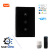 Công tắc thông minh Tuya có kích thước hình chữ nhật 120x75mm hoàn toàn tương thích với các công tắc thông dụng tại Việt Nam như Sino, Panasonic…, các nút cảm ứng điện dung siêu nhạy và mặt kính chống xước cao cấp giúp ngôi nhà bạn trở nên thông minh và sang trọng hơn.
